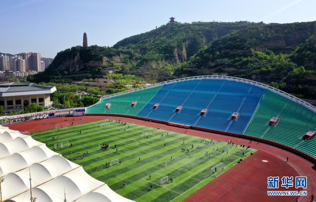 市民在延安体育场锻炼(5月9日摄,无人机照片)。新华社记者 刘潇 摄