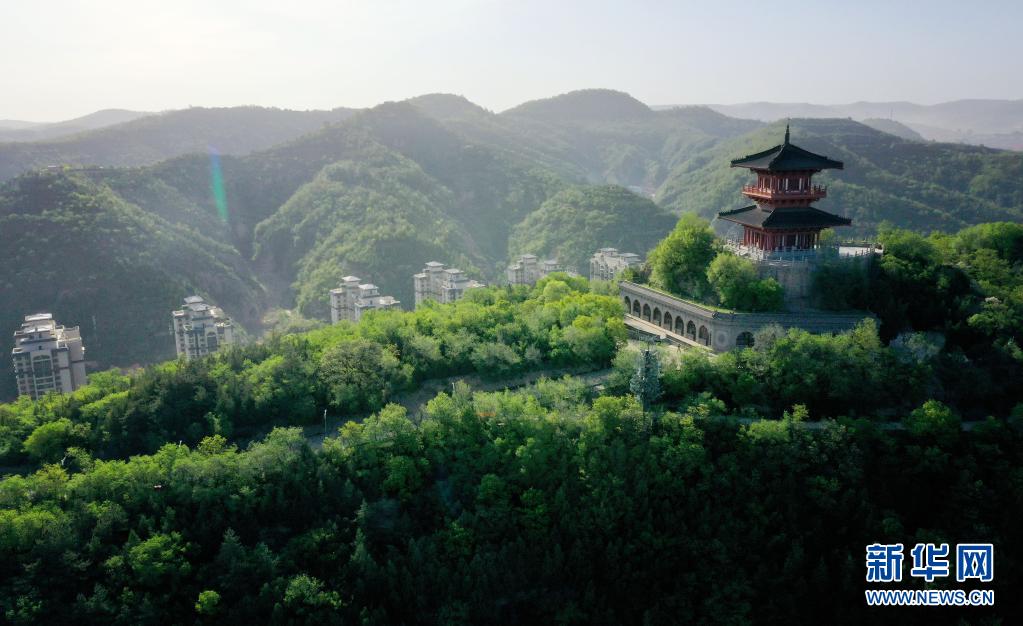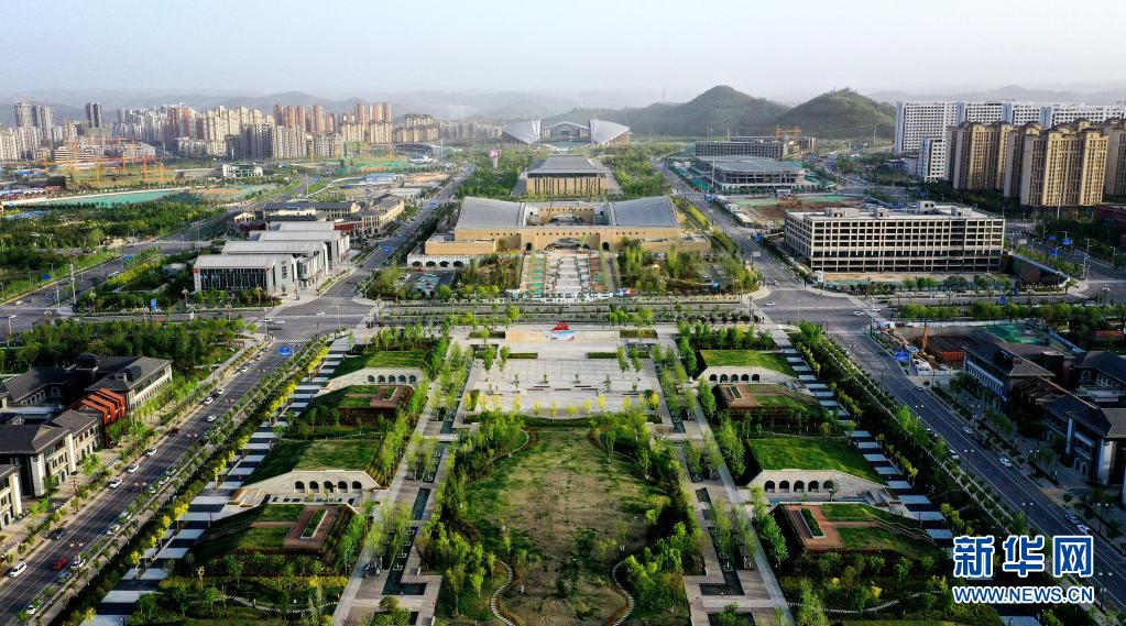 5月8日拍摄的延安新区文化公园(无人机照片)。新华社记者 刘潇 摄