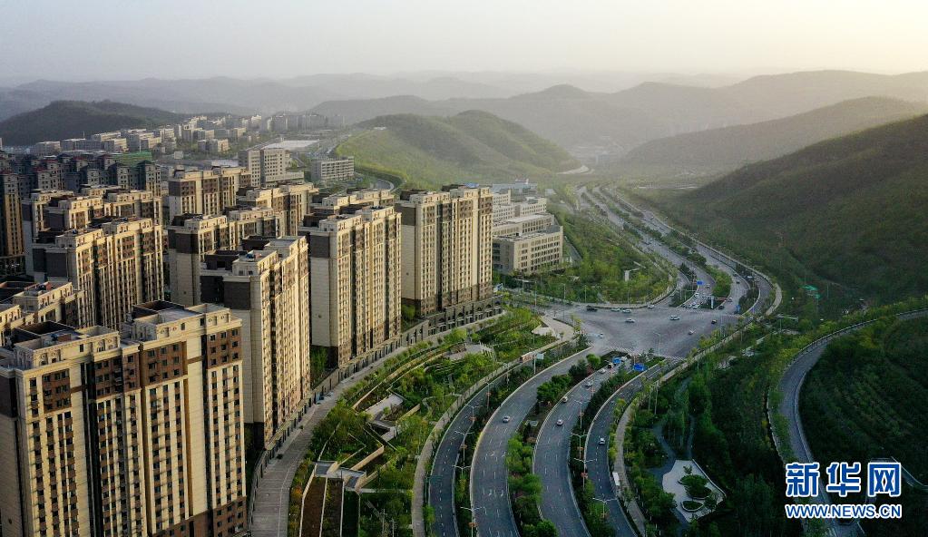5月7日拍摄的延安新区(无人机照片)。新华社记者 刘潇 摄