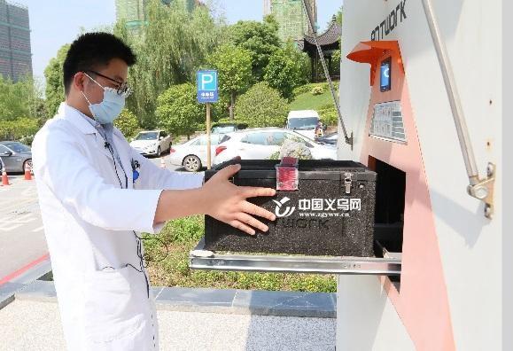 中国义乌网5月25日讯(记者 龚书弘 通讯员 金南星 编辑 童晓)5月25日上午,一架载有动脉血标本的无人机从浙大四院医共体福田院区起飞,5分钟后稳稳地降落在浙大四院无人机停机坪。标本到达浙大四院后,工作人员将其从无人机的特制恒温货箱取出,迅速送往检验科进行动脉血气分析。