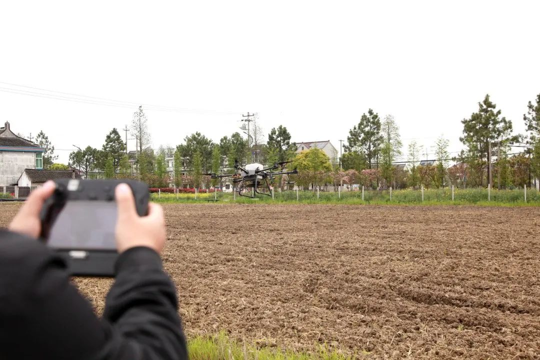 无人机的高效性与便利性是其越发受到农户欢迎的主要原因。植保无人机一般包括飞行平台、飞控、喷洒结构三个组成部分,较传统的农机更为轻便。浙农飞防使用的大疆无人机目前最大载重达四十公斤,一块电池可供飞行十五分钟,以播种油菜为例,一架植保无人机单次飞行可轻松完成十余亩地的播种工作,播种一亩地最快只需要一分钟左右,效率远胜人工播种。