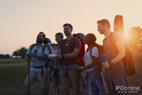 拍集体照也是可以用无人机的,除了平拍的视角,用得最多的就是俯拍,在草地上,人可以躺在地上,围成一个圆圈,拍出来的效果很新颖。