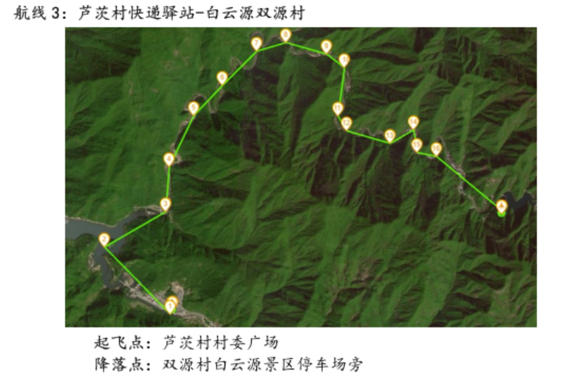 中通无人机在芦茨村的应用试点,由海燕EL-61机型承担,该机型最大载重15公斤,可以有效飞行30分钟,有效航程超过20千米,将主要从芦茨村快递驿站将快递配送至青龙坞、白云源与严陵坞等3个自然村,预计日均配送快递约50至80件,助力桐庐实现从“行政村到自然村”层面的快递进村。