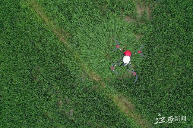 5月28日,万年县陈营镇南岗村,技术人员正在操作植保无人机给早稻喷洒农药。眼下,正是早稻生长的关键时期,农户抢抓晴好天气,抓紧对秧苗进行打药施肥、除杂草...