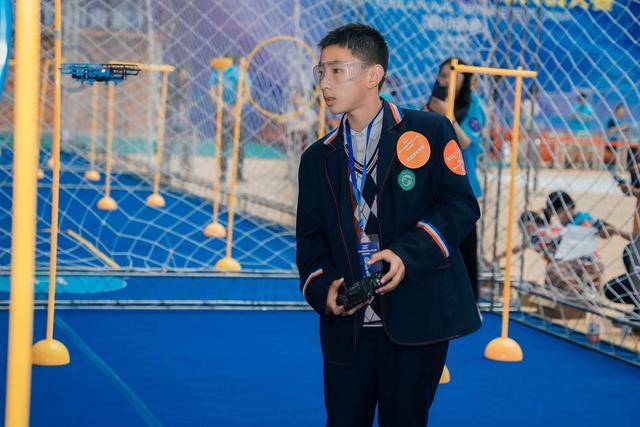 比赛现场,青少年选手们头戴护目镜,手持遥控器,全神贯注的操控着无人机,低飞、旋转、翻腾……小小的无人机在参赛选手们的控制下变得十分灵活,现场欢呼声此起彼伏。