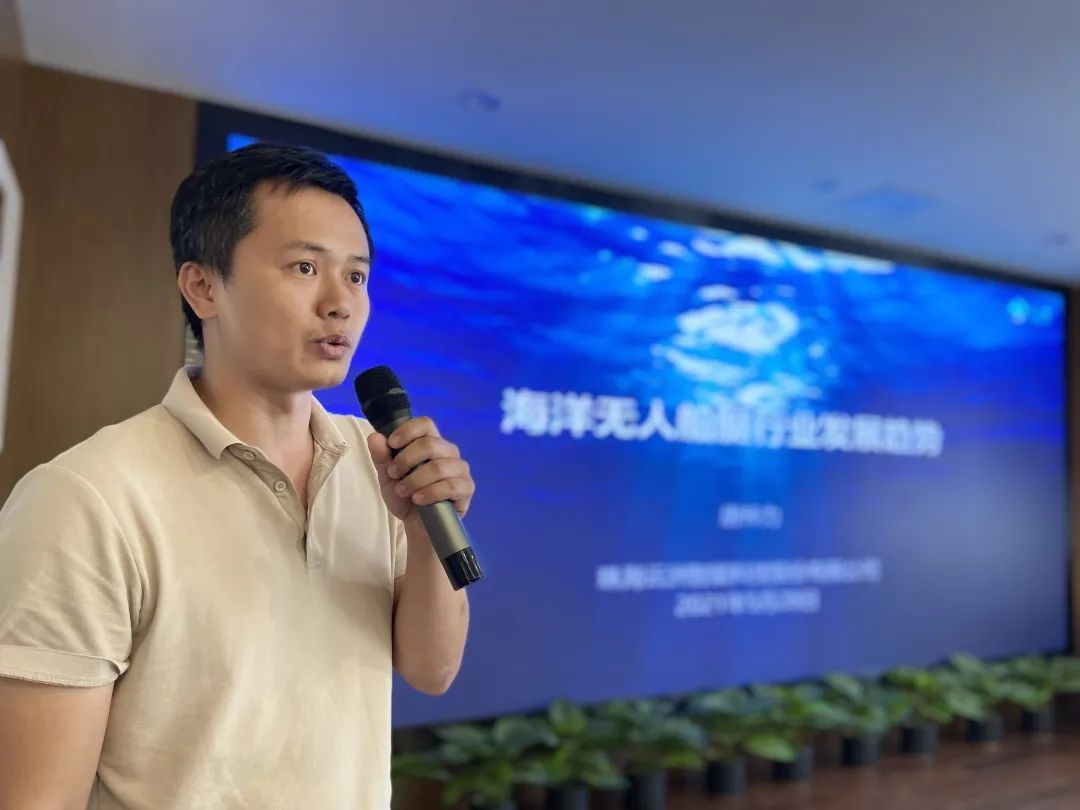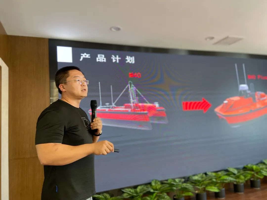 随后,云洲智能蒲进菁、唐梓力两位博士先后就M40A多用途无人艇产品、海洋无人艇应用趋势做了专题报告,精彩洞见赢得掌声阵阵。在研讨交流环节,与会行业人士围绕海洋无人艇技术与应用等主题轮流发表观点,现场讨论热烈。针对云洲无人艇进入工程化应用后的相关技术难点和优势等问题,蒲进菁、唐梓力两位博士现场给予了解答。