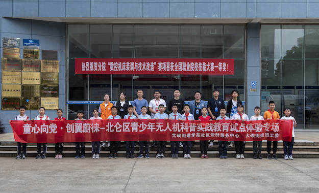 宁波职业技术学院和北仑大碶博平小学两所院校均坐落于大碶街道学苑片区,得益于区域“党建共同体”,社区主动发挥党建联盟的平台效能进行有效联通,促成了此次院校以及学生的帮带结对。大碶街道学苑社区党委书记胡碧慧说:“无人机产业基地有着强烈的文化带入感,尽管小学生们之前在学校或多或少都有曾接触,但系统的科普教育体验还是第一次,脸上的笑容,脚步的逗留就是孩子们对活动满意度最好的反馈和回应。”