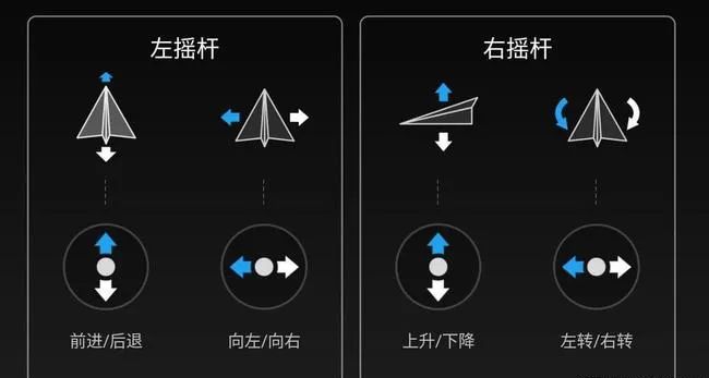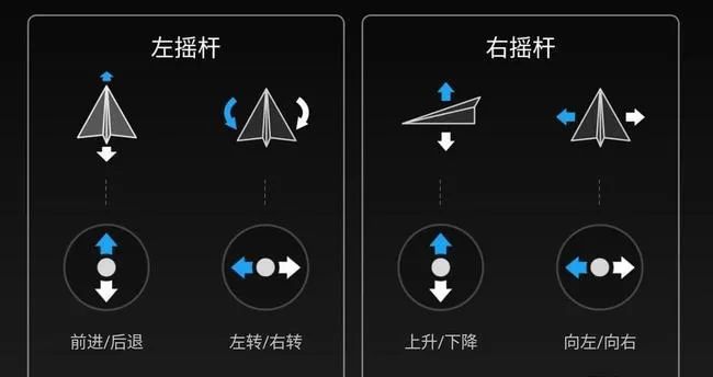 其次是“日本手”。所谓的日本手,就是遥控器的左摇杆控制无人机的向前向后飞行、顺时针/逆时针旋转;遥控器的右摇杆控制无人机的上升下降、向左向右飞行。