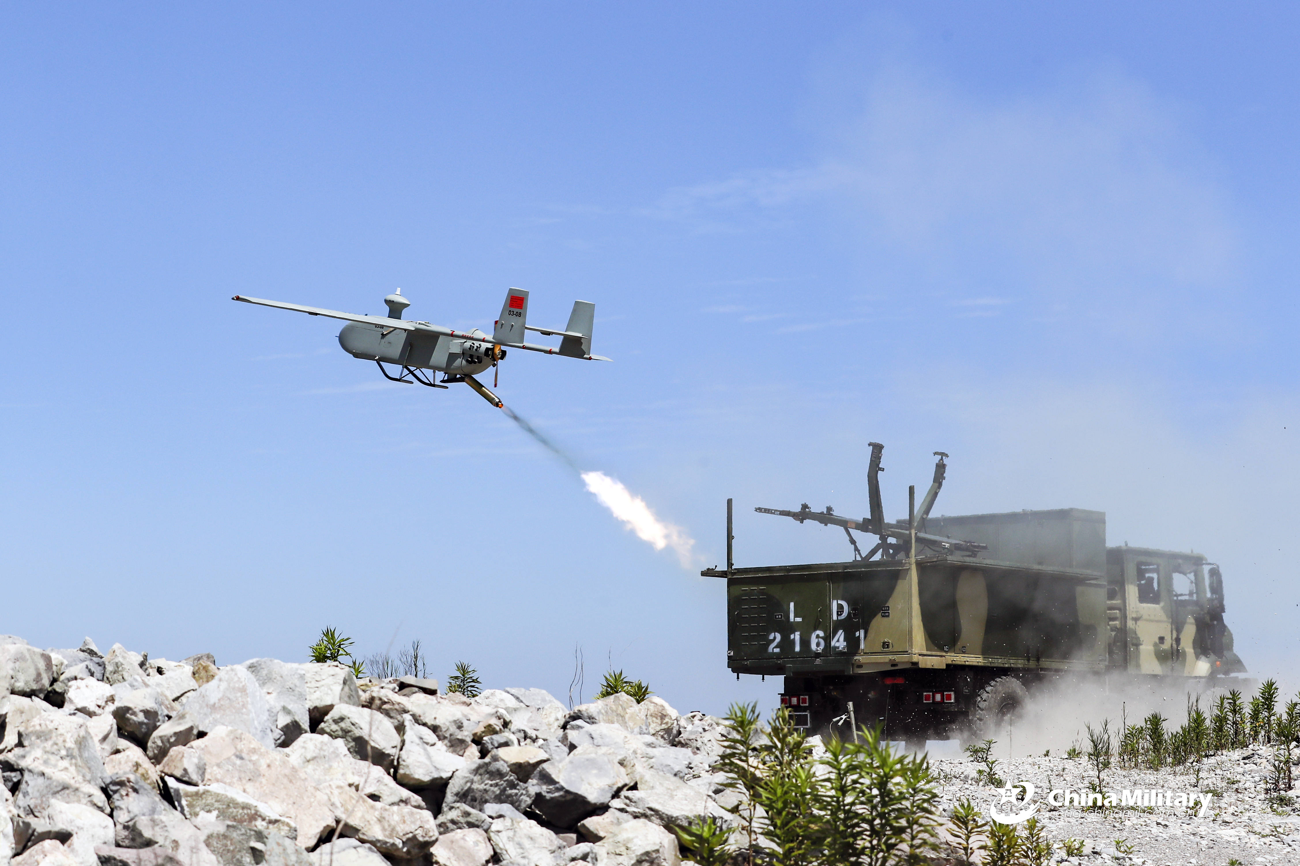 5月31日,第71集团军某炮兵旅开展实战化军事训练,在训练中,该旅装备的无人机战斗起飞,为炮兵部队提供信息化支援。