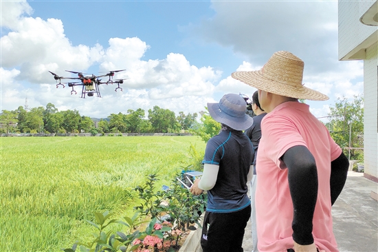 据了解,今年早造台山市统防统治农田达到800公顷(12万亩)。目前,参与台山市统防统治的无人机超过300架,有“持证上岗”的属地飞防队伍80多支,日作业能力最高可达4000公顷(6万亩)。台山市还通过聘请“村级助理”“属地飞手”等方式,储备和孵化了大量新型农村人才队伍,实现地方“新农人”再就业143人。通过推广机械化、智能化现代农业,不仅节约时间、减少农药浪费、降低人工成本,还能控制农业面源污染,提高质量安全水平,实现水稻高产优质,为今年台山市粮食安全和农业绿色发展打下良好基础。