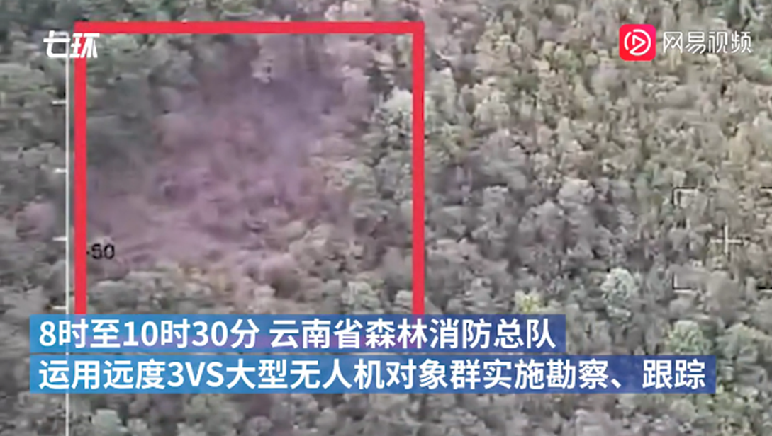 据悉,野象群于5月29日进入植被茂密的林区,跟踪观察难度加大,在多次使用小型无人机搜索无果后,云南省森林消防总队调用垂直起降固定翼大型无人机,终在密林深处寻找到象群踪迹。