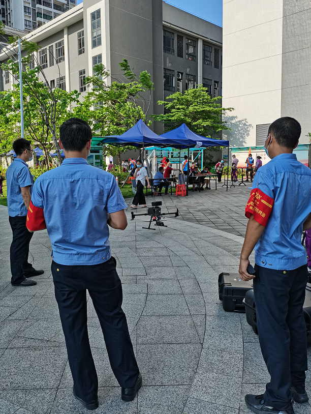 记者了解到,这次,无人机更是当起了空中“哨兵”。“请尚未做核酸检测的人员到七一村部留下做检测,请做好葵花码登记,谢谢配合。”4名持证飞手网格员利用无人机的巡查覆盖面广,不受地域限制,巡查速度快,弥补了单一人员上门效率慢的特点,驾驶无人机在小区低空飞行开展空中防疫宣传,喊话群众有序下楼做核酸检测,冲在疫情防控第一线。