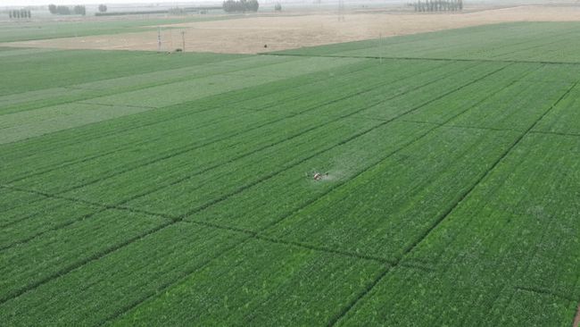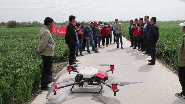 近年来,我县大力推动农业产业化、科技化。种植合作社、种粮大户积极响应政府号召,自发成立了植保无人机服务小分队,他们奔走在田间地头,用高科技保障粮食安全。在紫塔乡西小里村的麦田上空,一架无人机正在执行飞防任务。半空中,无人机机翼呼呼作响,麦田如水面般快速波动翻转,雾状的药滴被均匀地覆盖到作物面上。仅仅几分钟,十几亩小麦的飞防工作完成。随后,工作人员熟练操控无人机降落、更换电池、续装药水,无人机再次腾空,飞向了另一片麦田。近年来,在农业科技与现代化发展的浪潮中,植保无人机获得快速推广应用,在农业病虫害统防统治工作中大显身手,不仅农业作业效率大幅提高,也在很大程度上解放了生产力。无人机飞行高度可控,旋转自由,离心式喷头保证药液喷洒细密、均匀,无药液漂移,无作业损失,喷洒效果看得见,比人工施药更加高效、安全、节约。现已成为农业生产田间地头的“新宠”,深受广大农民欢迎。