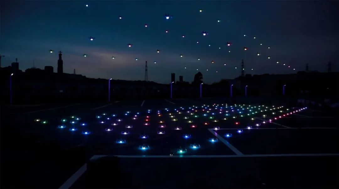 时而上下变换队形,时而随着音乐节拍排出字幕……