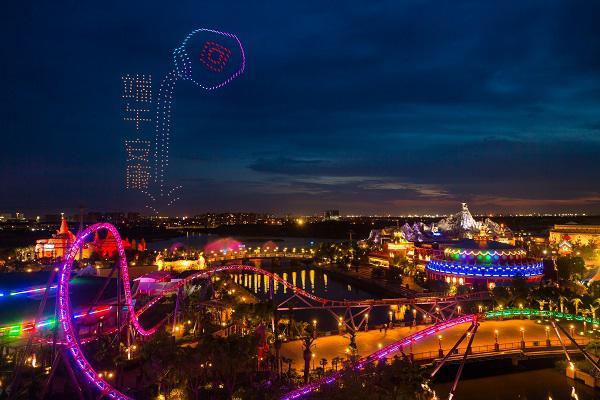 今晚起,近400台无人机编队夜空下绚丽变幻,秀出“端午安康”“鱼跃龙门”等祝福语。同时,水上飞人花式翻转和水幕激光炫彩交织,“粽”情海洋夏日夜晚。
