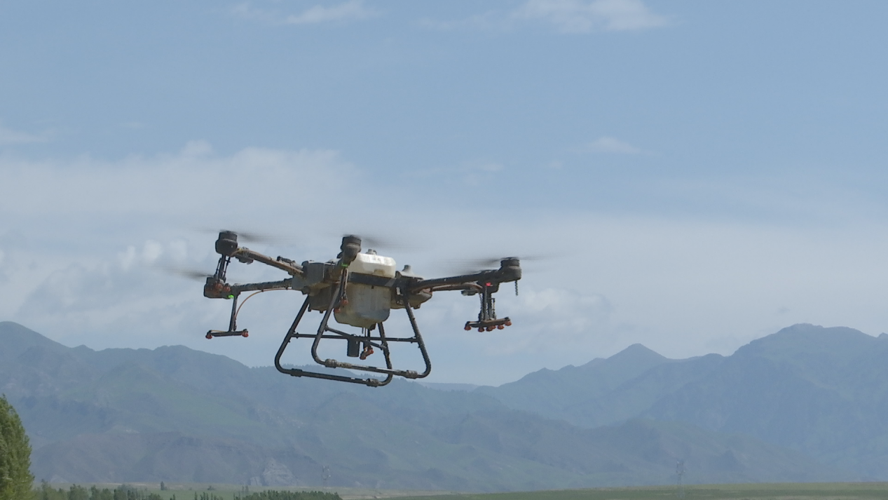 尼勒克县农福源农业科技有限公司植保无人机操作员李涛说:“三十公斤的药桶,作业效率高,对农作物的优势药桶压苗、节约用水,农药的使用量也少,喷洒范围更广,也更均匀。”