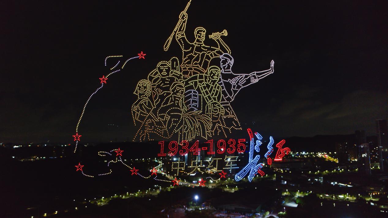 百年征程波澜壮阔,百年初心历久弥坚。穿过时间之门,沿着岁月长河溯流而上红船起航、万里长征、新中国成立、改革开放、全面建成小康社会......在无人机的有序变幻下一幅幅壮丽图景依次浮现。