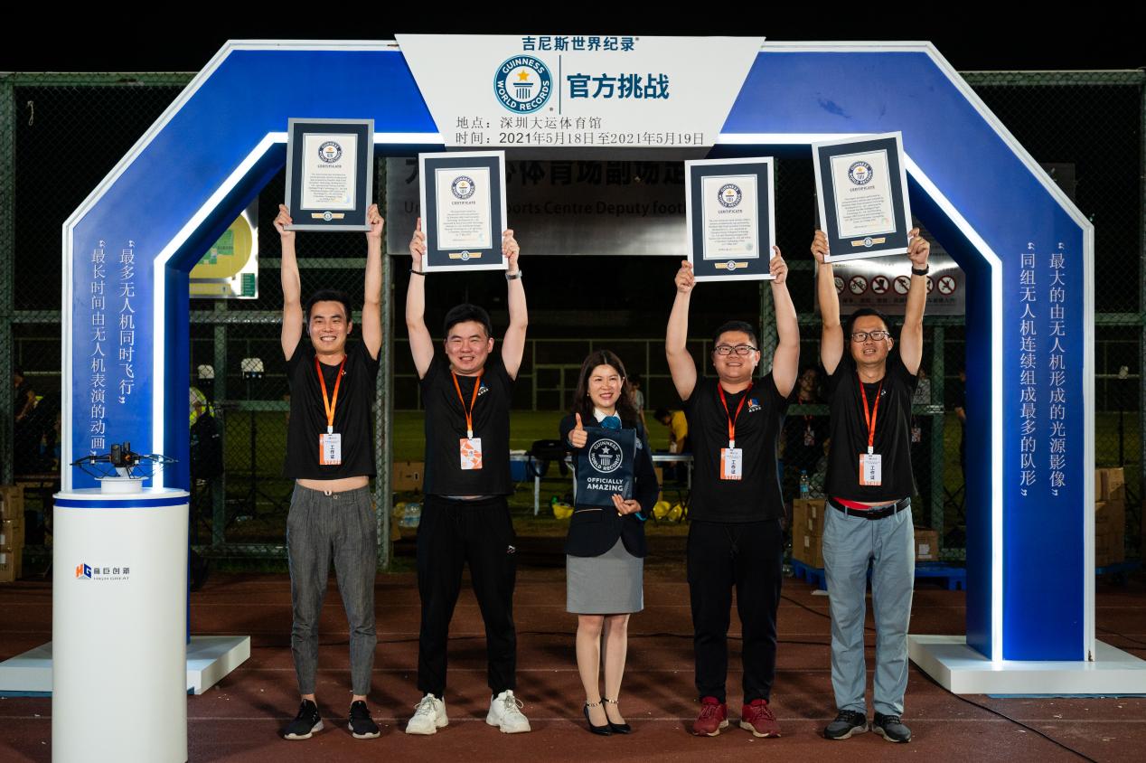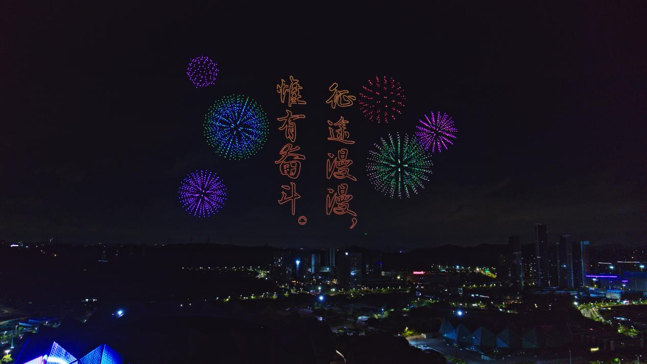 当天,高巨创新以一场史诗级的视觉盛宴,在龙岗大运中心的上空向党深情献礼,并创下了世界纪录“最多无人机同时飞行”。