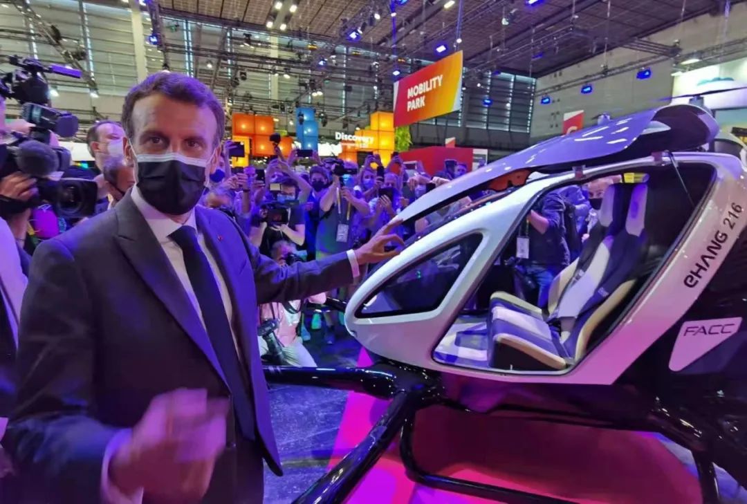 法国总统埃马纽埃尔·马克龙参观亿航智能展位