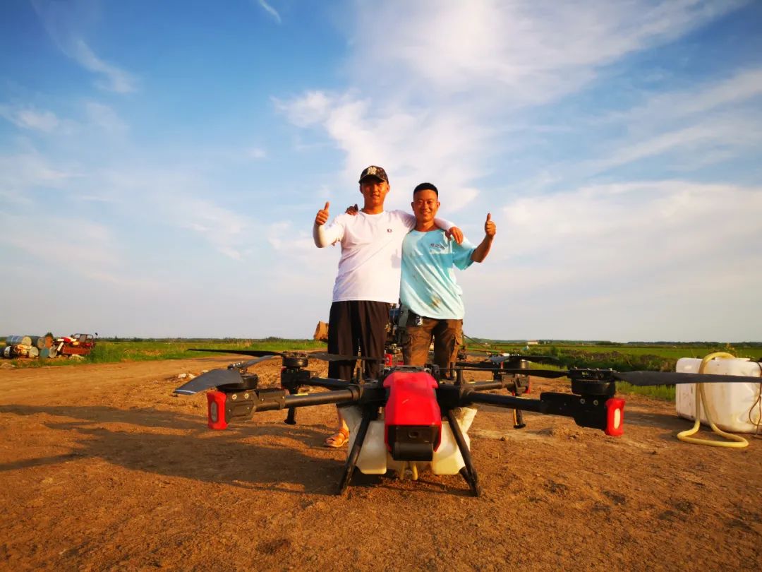 超哥和东哥是从同学时期开始的铁哥们,一起度过了年少轻狂的青葱时光,用超哥的话说,那就是“过命的兄弟”。所以当他要组建自己的飞防团队时,超哥第一时间就想到东哥。当被问到为什么答应邀请时,东哥笑着说道,“最开始我是被他‘忽悠 ’过来的,我自己家里有 400 多亩地,也用这个极飞农业无人机打药,喷洒效果挺好的。我觉得未来在农村,用无人机作业一定是趋势,这是一次很好的创业机会。既然兄弟也看好,那就一起干!”