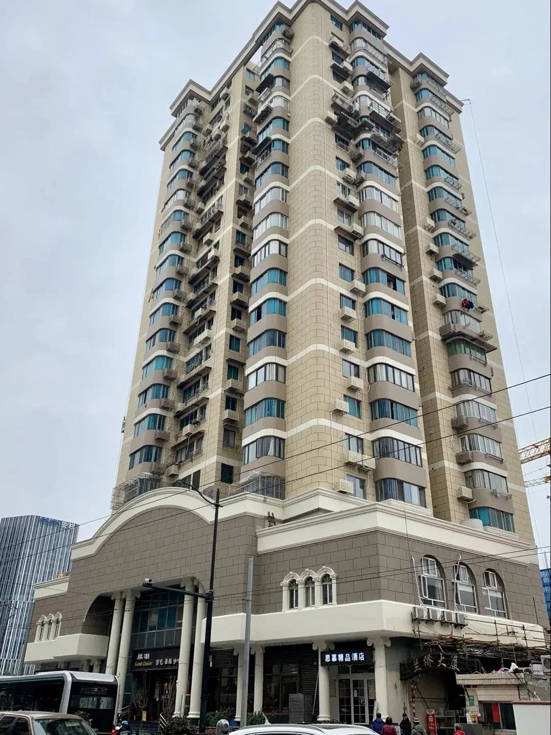 兰侨大厦临近保定路和长阳路,是1998年前建造的独栋高层小区。由于房屋外立面年久失修,外墙开裂。去年,大厦出现了掉落墙皮的现象,有极大安全隐患。