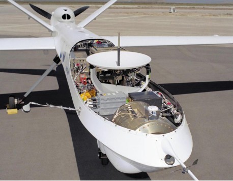 ▲ 拆开“捕食者”机头上方的天线罩,可以看到一个卫星通信天线