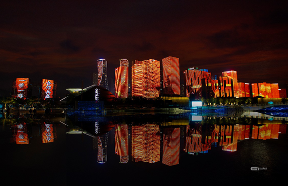 主题灯光秀还有独具“杭州味道”,紧扣“永远跟党走”主题,选取了特色杭州元素庆祝建党百年。弄潮儿形象踏着数字浪花,勇立潮头,数字生活的展望穿梭呈现,建设“数智杭州•宜居天堂”远景以及高质量发展建设共同富裕示范区的奋进蓝图在光影的演绎下被生动触摸。