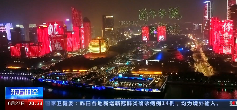 6月24日至7月5日,钱江新城建党100周年主题灯光秀于每天19:30、20:30、21:30各播放一场,欢迎大家打卡!