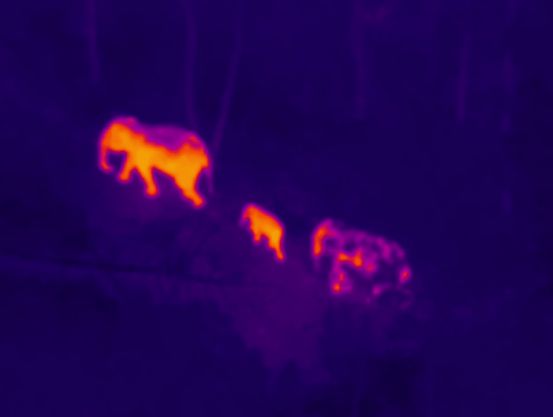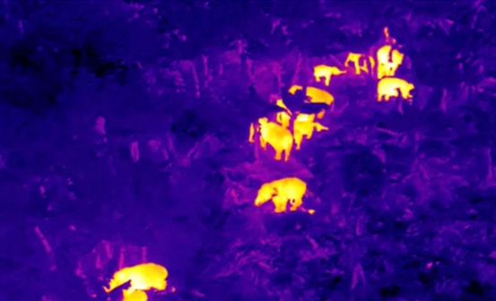 夜间观测往往是跟进野象北移路径中的又一工作难点。红外热成像功能此时则能有的放矢,高效补充夜间观测盲点,象群家族夜晚活动的影像轨迹也能清晰可见。