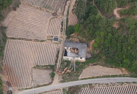 500米外,无人机通过高倍变焦画面开展监测 图源:北移亚洲象监测组-李仁培、罗家全、李靖宇、柏兵
