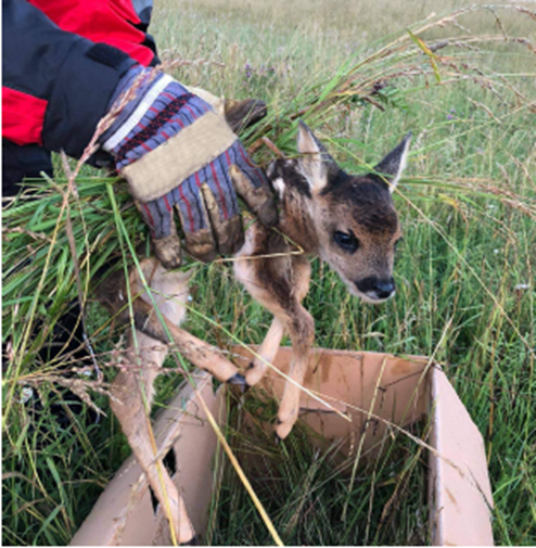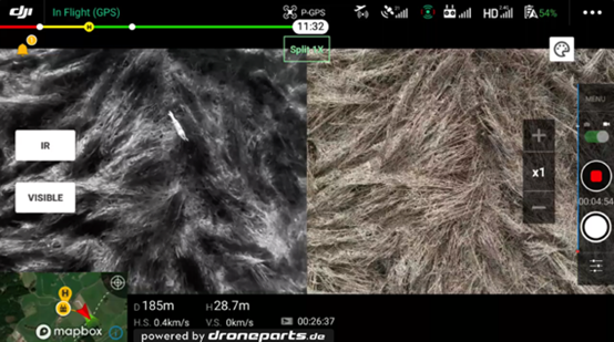 在德国,每年有上万只小鹿在春季的除草工作中伤亡。为了避免母鹿和其他野生动物被割草机误伤,德国政府规定必须事先对农田进行搜索,否则要承担相应法律责任。但对于当地农民来说,这是一项费时费力的工作。鉴此,大疆与与当地民间组织——Flugmodus BK合作,用红外无人机去寻找农田间的小鹿,通过黑热和白热模式,轻易辨识到小鹿,有效避免了动物伤亡。目前,红外无人机已经成为当地常态化的监测手段。