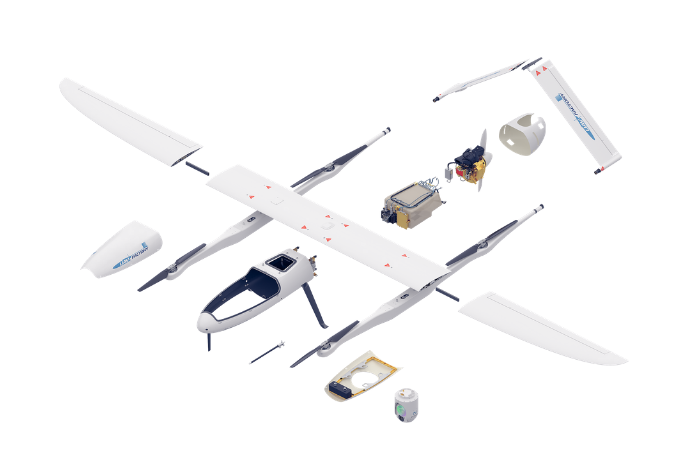 该飞机的电池是定制设计的,尽可能的小,具有出色的功率重量比,更换电池可以在2分钟内完成,最大限度地减少了飞行之间的延迟。工业浮动连接器设计在飞机部件组装时自动连接电连接器。飞机组装只需15分钟,可由一名技术员完成。