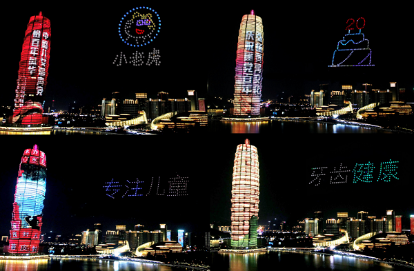 国际郑笑迎天下客,灯光秀点亮不夜城。恰逢中国共产党建党100周年、河南小老虎口腔医院20周年之际,河南小老虎口腔品牌联合灿羽科技,通过酷炫的无人机技术在郑州地标如意湖上空,上演了一场大型光影灯光秀。动感变幻,绚丽多姿。活动吸引了大批市民围观喝彩,现场人山人海,好不热闹。