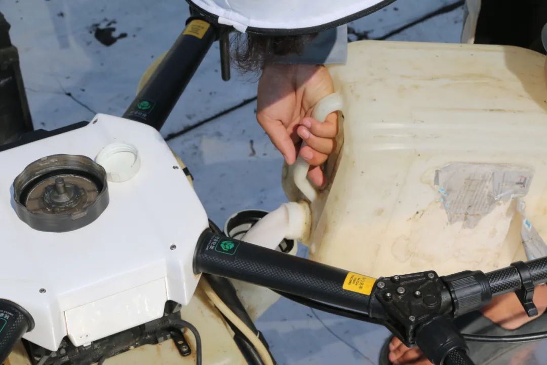 据现场工作人员介绍,植保无人机单机单日作业面积可达200亩,而人工作业大约在10到20亩,无人机作业的效率远远高于人工喷雾和常规大型施药器械。且无人机作业时产生下压风场有助于药液均匀散布,有效解决药液漂移和蒸腾的问题,用药量减少20%以上,降低了环境污染。