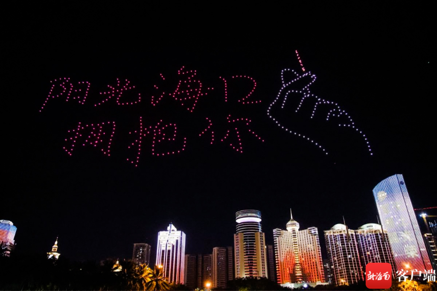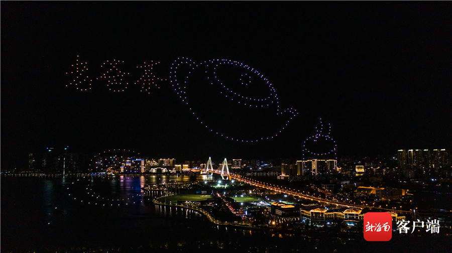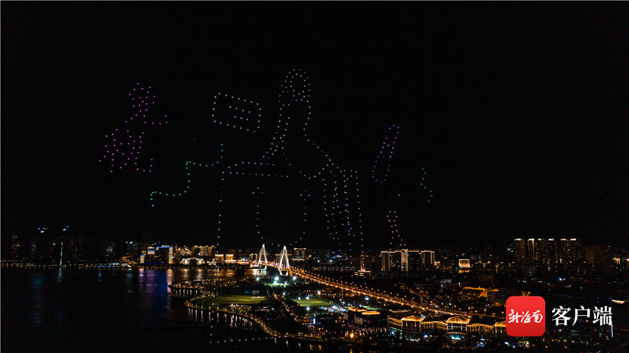 7月16日晚,520架无人机光影秀“点亮”椰城夜空。记者刘洋 摄