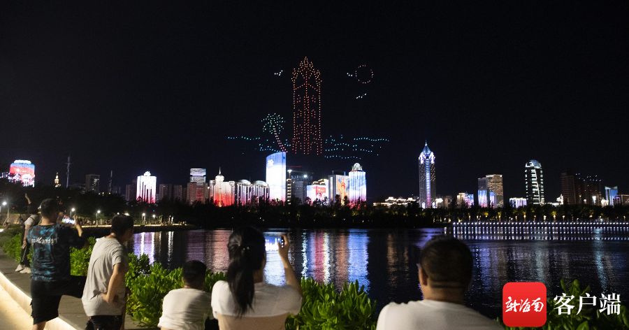7月16日晚,520架无人机光影秀“点亮”椰城夜空。记者 李昊 摄