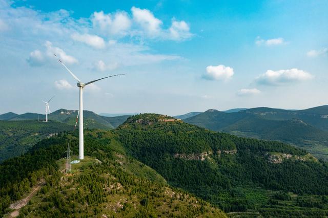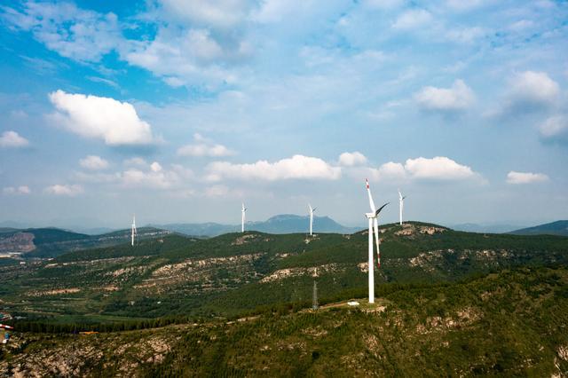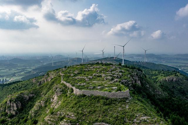 在济南有一条济广高速(济菏高速),它从济南遥墙国际机场开始,向西南方向连接济南的长清区和平阴县,绵延100多公里。在长清区孝里镇出口处,会发现两处特别的景观,一个是路边一个大大的篆书的“齐”字雕塑,它告诉我们这里是世界遗产齐长城的起点;另一个景观就是路旁绵延的小山之巅,密密麻麻转动的大风车(风电场),在悠悠的白云下闲适地转着,煞是好看。
