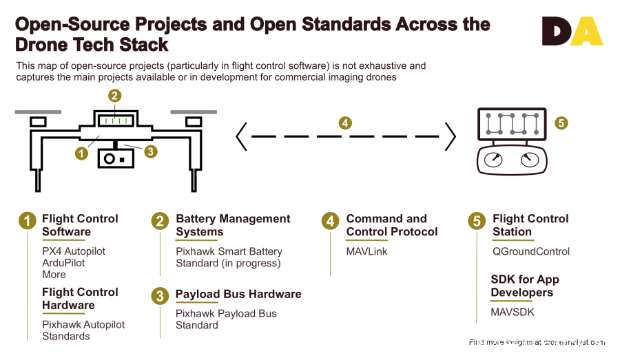 降低网络安全风险和执行标准的潜力:开源不仅有利于资源较少的小公司,Drone Analyst 还表示,开源对大公司有好处:“随着标准的严格执行,大型企业几乎可以互换地测试或部署多个系统”