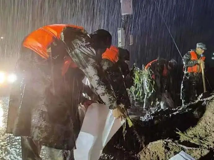 ▲ 抗洪一线的人民子弟兵(图片来自人民日报)