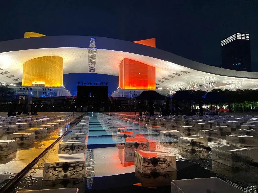 但在演出亮相前还有诸多难题等待解决。时间紧任务重,连日暴雨及暴晒,人流密集,地铁磁场干扰……随便一项,对无人机编队表演而言,都是致命考验!