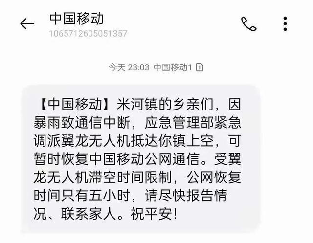 燃爆了!灾区人民收到翼龙抵达短信