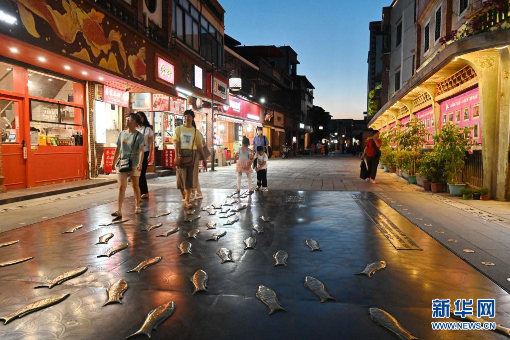 游客在“微改造”后的泉州市金鱼巷游玩(7月8日摄)。新华社记者 林善传 摄