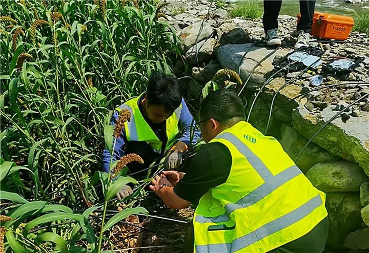 在安阳滑县道口古镇卫河岸边,因上游新乡、鹤壁、焦作等地洪水集中排入卫河,造成该段卫河水位暴涨,河面宽度从30多米猛增到100多米,即将发生漫堤险情。因卫河泄洪造成当地骨干光缆中断。7月22日早6点,滑县移动抢险队携带皮划艇、无人机、熔纤箱等赶到现场实施抢修,该断点距离最近桥梁超过2公里,且洪水流速快,皮划艇难易渡河,用无人机牵线飞跃卫河最保险。经过连续8个小时的紧张抢修,重新布放200米光缆,该断点在下午2点成功抢通。
