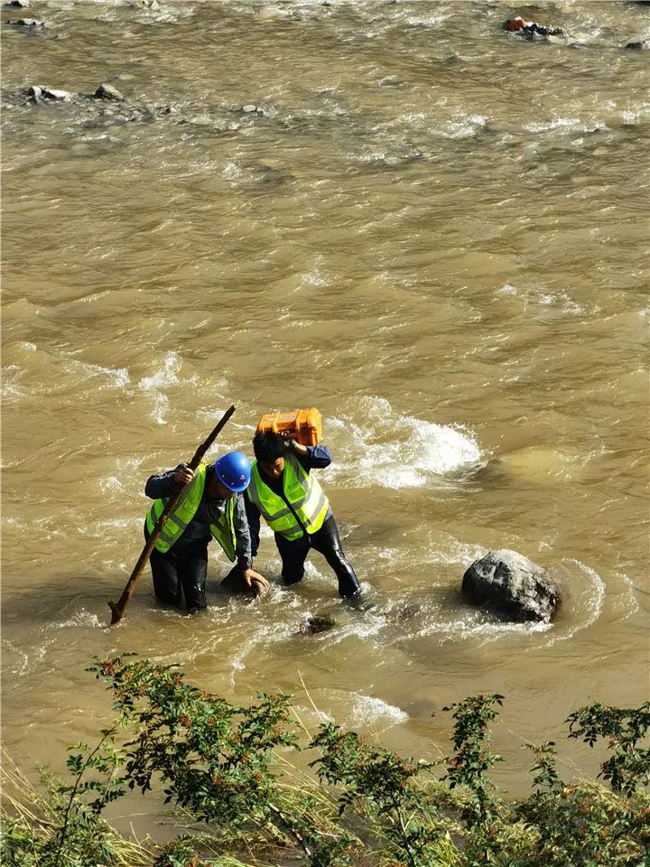 在安阳林州五龙镇碾上村,暴雨引发洪水造成当地桥梁道路被毁,水电通信全部中断,被洪水和大山包围的碾上村俨然成为一座“孤岛”。7月25日,山洪水势稍缓,采用特殊方式可以冒险进村,移动抢修人员立刻携带发电油机、皮划艇、无人机、光缆等设施前往抢修。在靠近河岸的一处干线光缆断点,由于附近桥塌路毁,河宽水急,抢险队员利用无人机牵线过河,再将较重的光缆拉到河对岸实施抢修,引得村民围观点赞。进村山路路基被山洪掏空,运发电机的车辆无法同行,队员们只能手抬600多斤的发电机,连推带拉艰难上坡。左手拿树枝探水深,右手扛着熔纤箱,两个人一前一后相互搀扶才能冒险蹚过1米多深的河水。村口唯一一座石桥被洪水冲毁只剩桥面,当地民警把守桥头禁止通行,队员们只能借助空中溜索冒险入村艰难施工,并给村内带去一些补给。累了饿了,就在路边吃两口面包,喝两口昨晚没喝完的瓶装水。