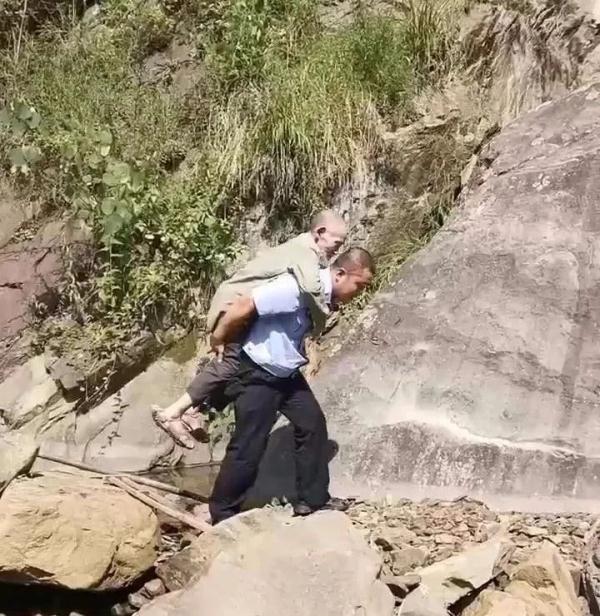 经民警现场查看,除身体虚弱外,老人并未受伤。之后,民警樊海林将老人背上肩头,其余几人在身后护送,经半个多小时艰难跋涉,终于成功将老人背出密林,护送到安全地带,并转交给余家镇政府作妥善安排。