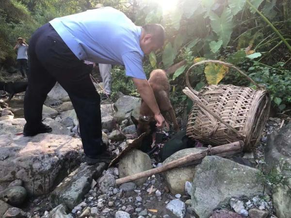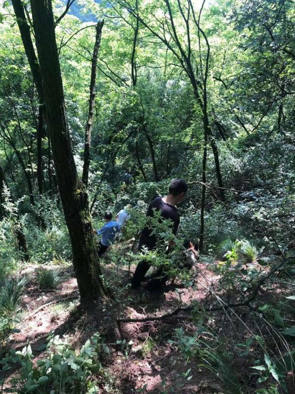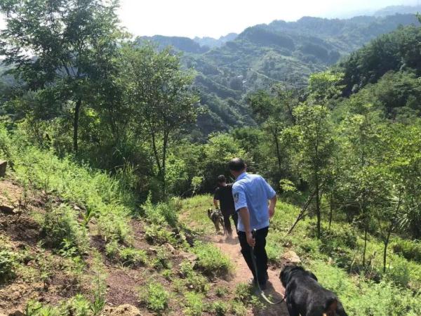 接到指令后,警犬大队副大队长张毅立即前往踏勘现场、走访群众,了解到卿朝坤于18日下午最后出现在饶家村六组石长门河沟,沟旁有老人留下的背篼、挎包及衣物。但因河沟周边植被茂密、山高坡陡、人迹罕至,村民们连续寻找多日仍然不见其踪迹。