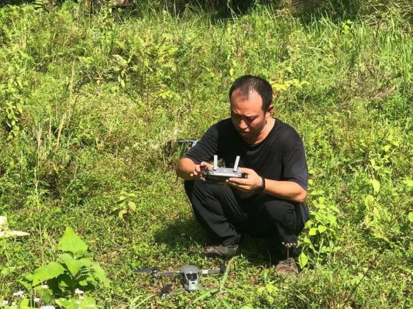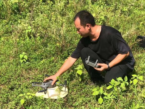 民警再次启动无人机对草丛周边展开搜索,一行人屏住呼吸,紧盯屏幕。几分钟后,当无人机下降搜索至悬崖下方时,屏幕上突现的移动斑点立刻引起民警汤兆明和樊海林的高度关注。