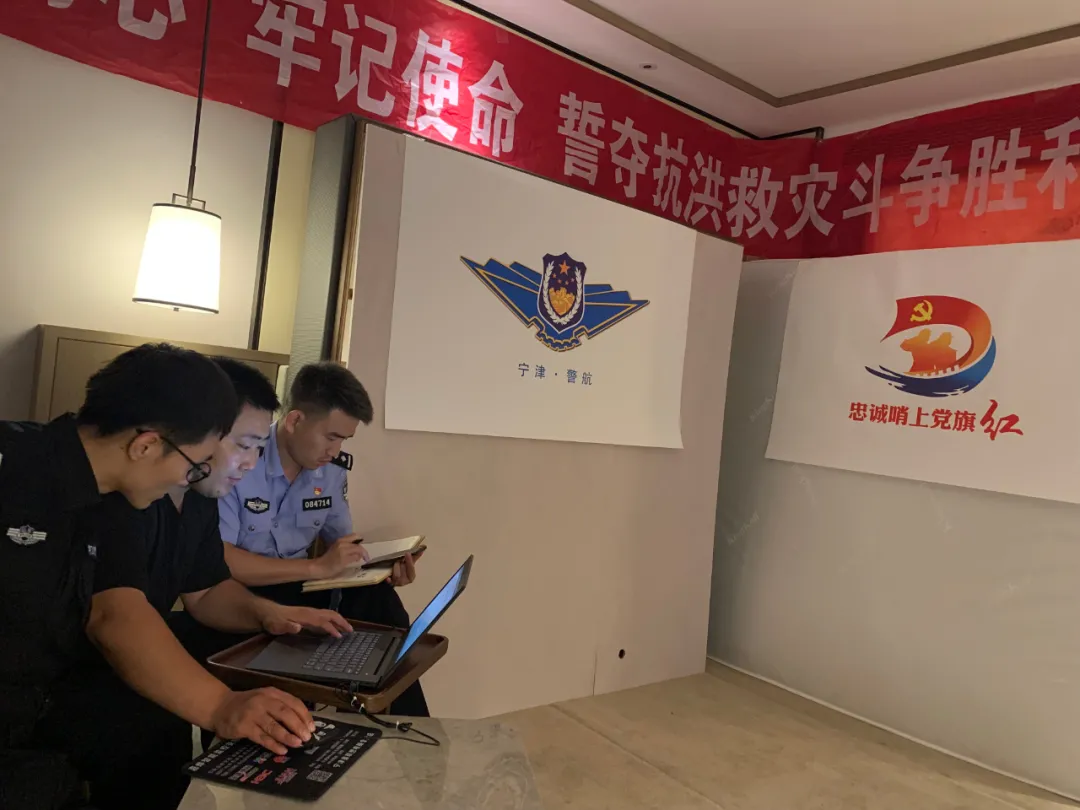 德州“飞鹰”警航编队时刻以忠诚哨上党旗红的党建品牌创建为引领,以党建带队建,以队建促工作,充分发挥了钉钉子及宁津渤海教导旅的三扛精神,不忘初心,牢记使命,在各级公安机关党委的坚强领导下,坚决打赢这场抗洪救灾的阻击战,为河南提供强有力的空中应急通信保障。