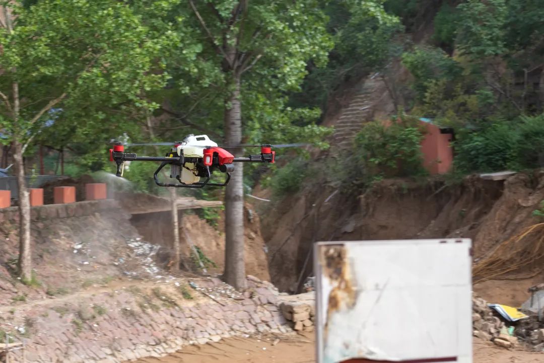 7 月 26 日,广州极飞科技支援队紧急飞赴河南灾区,联合河南省疾控中心,迅速开展灾后防疫消毒工作。
