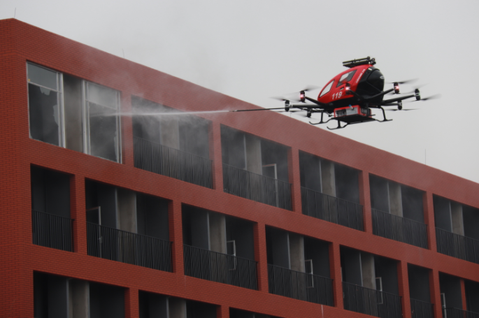 亿航智能设备(广州)有限公司的Falcon侦察机、EH216F消防机、EH216救援机搭配亿航智能自主研发的指挥调度系统,可实现随时响应,迅速飞抵火场进行高层扑救,是集勘测、灭火、救援、应急管理等多重功能为一体的新型智能空中消防设备,为城市高层火险搭建生命快线。